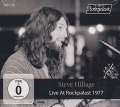 ドイツのMIG/メイド・イン・ジャーマニーから、DVD+CDの2枚組&3面開きデジパックでのリシュー。スティーヴ・ヒレッジはロンドン出身のギタリストで、プログレ系リスナーには何よりゴンクでの活動で知られていると思うが、アザッケル(ユリエル)、カーン、システム7の他、ソロ活動でも名を馳せるカンタベリー・ロックのビッグ・ネームの1人。本作は、タイトル通り77年3月20日にドイツのベンスブルクで行われたロックパラストでのライヴ映像&音源で、映像は当時WDRのテレビ番組で放送されたフィルム。07年ヴォイスプリント盤DVD「ジャーマニー '77」、14年レパートリー盤「ライヴ・アット・ロックパラスト 1977」と基本的に同内容で、CDは抜粋された7曲を収録。メンバーは、ヒレッジ、ミケッテ・ジラウディ、クライヴ・バンカー(ex.ジェスロ・タル,ソルスティス,etc)、コリン・バース(ex.キャメル,etc)、クリスチャン・ブーレ(ex.クリアライト,etc)、フィル・ホッジ、ベイジル・ブルックスの7人編成。ブートレッグでもある程度知られた映像だったが、充実のメンバー編成での70年代絶頂期のライヴで、ファーストとセカンドからの曲を軸に申し分のない濃密な演奏を堪能出来る。グリッサンド奏法も含め、スタジオ盤での繊細かつ流暢なギター・サウンドがヒレッジとブーレによって見事に再現されていて、さらに「ライヴ・ヘラルド」のような豪快なノリのよさも相俟った、およそ文句なしのカッコよさを放つ大好ライヴ映像と思う。放送用映像なので音質もよい。えらいカッコよし!。DVDはNTSC/R0で普通に観れる。85分