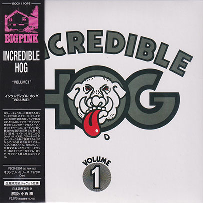 国内のヴィヴィッド・サウンドから、限定ペーパースリーヴでのリシュー。ヴィヴィッドが韓国ビッグ・ピンク・ミュージック盤にオビ・解説を付けた国内流通盤で、コーティング紙ジャケ仕様、25年新規リマスター盤、ライナーは小西勝。インクレディブル・ホッグはロンドン出身のグループで、ケン・ゴードンが在籍していたスピード・オークションという学生バンドを母体として72年に結成された。本作は、73年にUKダートからリリースされた唯一のアルバムで、メンバーはゴードン、ジム・ホルムズ、トニー・アーウィンのトリオ編成、プロデュースはロジャー・ワトソン。概ね、わりと外連味のないストレートなブルース・ハード調サウンドを展開していて、重くてキレのあるギター、勢いがあってスカっとしたシャウト・ボーカル、粘っこいがベース、ドカスカなドラムが、ブルージーなギター・リフを基調に一体となってグイグイ押してくるタイプ。メンバー達はまだ20歳そこそこと若いようだが、ともかくもギミックなしでヘヴィに爆発していて、サイケの残滓を引き摺ったテンションの高いギラギラ感とアングラな空気感は素直にカッコいい。全体にバンド感も十分でマイナー主体の楽曲もハマっていて、ハード・ロック愛好家ならまずもって楽しめるだろう好盤と思う。余談だが、当時ゴードンはロリー・ギャラガーに傾倒していて、バンドもテイストを標榜したトリオ・スタイルということだが、ギャラガーのような饒舌なタイプのギターではなく、不器用さが個性になっている感じで、その辺りもまた面白くて味わい深い。カッコよし!。